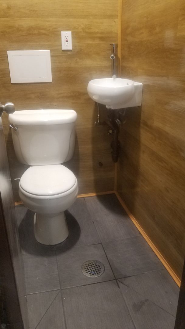 Each floor includes three bathrooms equipped with toilets and sinks, along with two recently renovated showers.