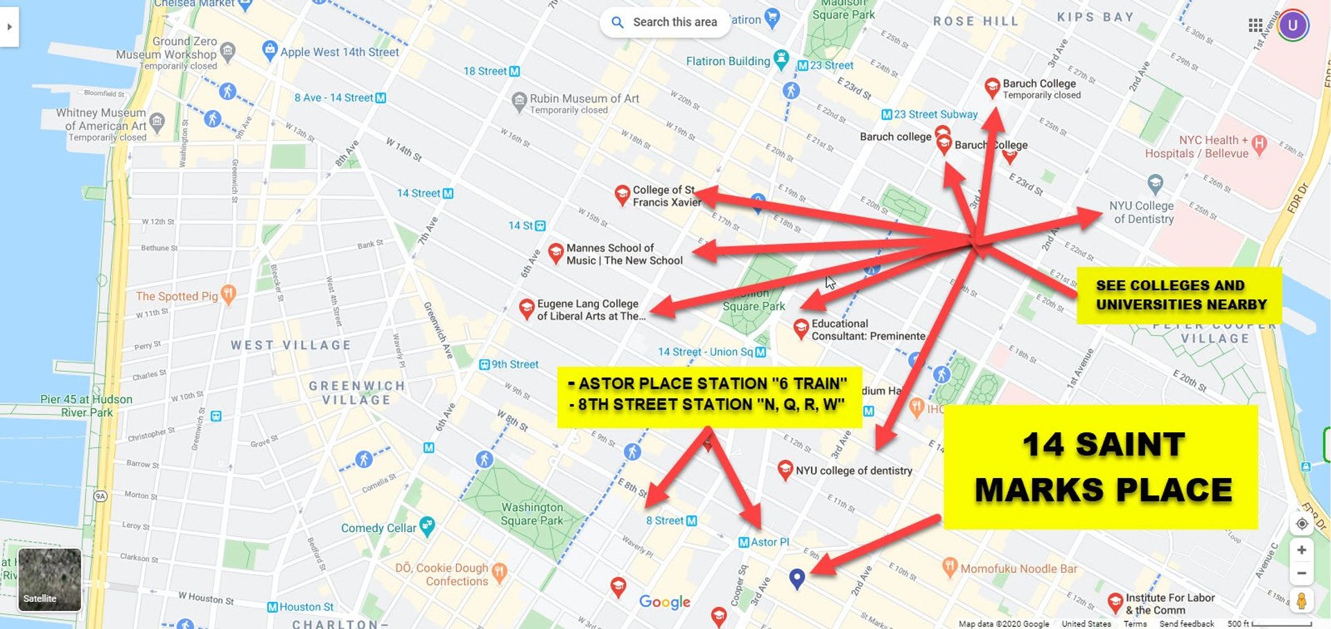 The building's location is ideal for students, given its proximity to numerous colleges and universities, including New York University. The neighborhood is rich with coffee shops and restaurants. Transportation is highly accessible: